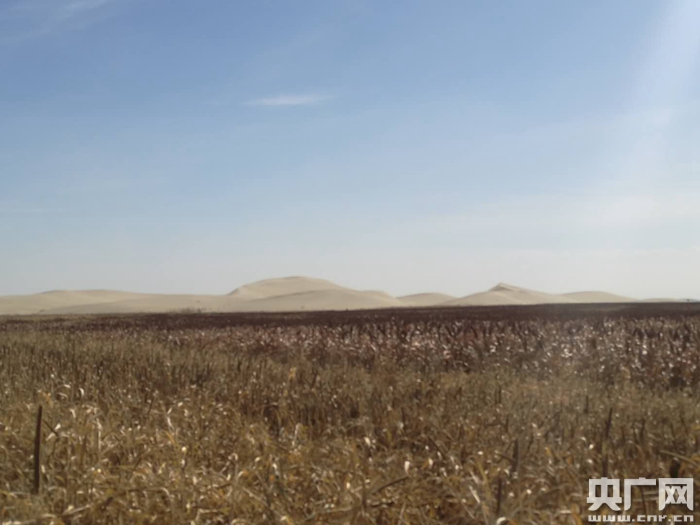 連綿沙漠和成片牧草反差明顯(央廣網(wǎng)記者 張孝成 攝)