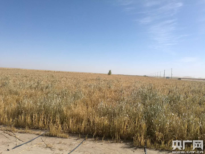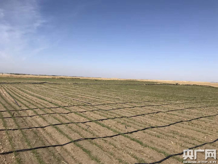 平整沙漠后采用滴灌技術(shù)種植的冬小麥(央廣網(wǎng)記者 張孝成 攝)