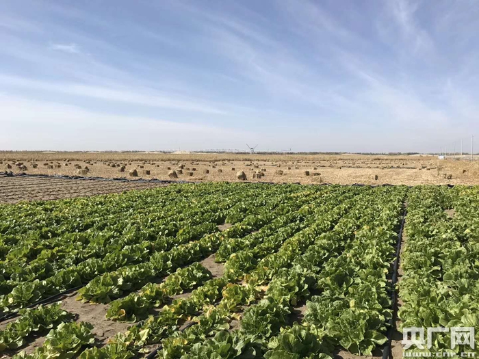沙漠邊緣種植的新小白菜(央廣網(wǎng)記者 張孝成 攝)