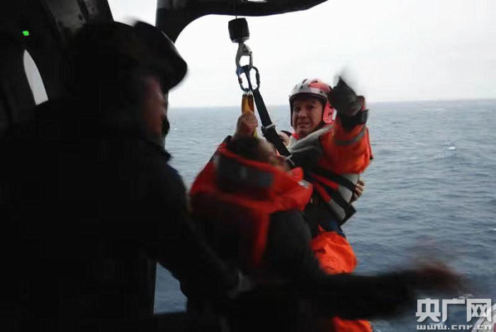 遇險船員被救助直升機(jī)救起(央廣網(wǎng)發(fā) 廣東海事局宣傳處供圖)