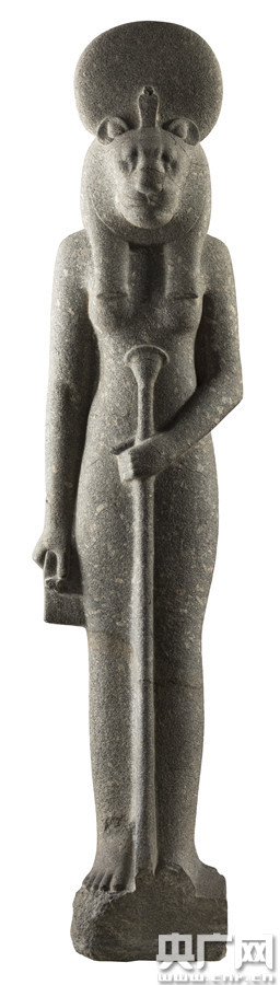此次展覽分為眾神庇佑、探尋永生、尼羅河畔三個(gè)部分,從不同的角度展現(xiàn)古埃及文明。第一部分“眾神庇佑”聚焦古埃及人的神靈信仰。古埃及在歷史上一直是個(gè)信仰多神的國家,沿著尼羅河從南至北,不同地區(qū)供奉著不同的神祗,而上至國王、下至百姓的各階層都虔誠祭拜。不僅有官方建造的大量神廟,用于祭祀國家崇拜的主神,普通人也通過向神廟進(jìn)獻(xiàn)供品來祈神賜福。在“眾神庇佑”展區(qū)中,體量頗為巨大的獅頭人身像(塞克荷邁特女神像)和獅身羊面頭像(阿蒙神化身)與眾多小型的青銅神像共同營造了古埃及莊嚴(yán)肅穆的信仰世界。
