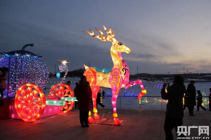 這次冰雪嘉年華活動分為賞燈觀景、特色餐飲、民俗演出三項內(nèi)容。夜晚,華燈初上。博樂市開屏湖彩燈斑斕炫目,潔白的冰雪世界變成五彩海洋。
