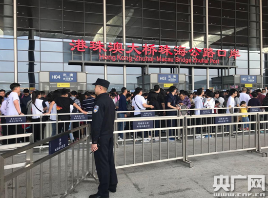 7日,已經(jīng)接近中午,港珠澳大橋珠海公路口岸依然有熙熙攘攘的游客在排隊準備出關(guān),港珠澳大橋珠海公路口岸派出所的民警們正在現(xiàn)場開展人流引導(dǎo)管控,全力維護通關(guān)秩序,防止發(fā)生擁堵事件。