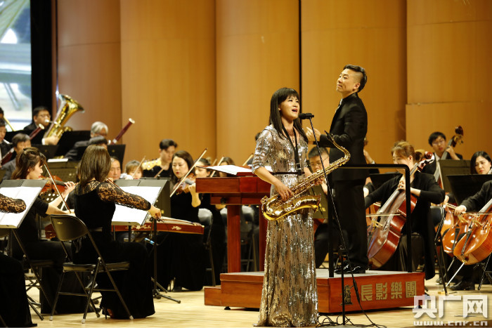 長(zhǎng)影樂(lè)團(tuán)薩克斯演奏家安曉麗正在演奏(央廣網(wǎng)記者 劉源源 攝)