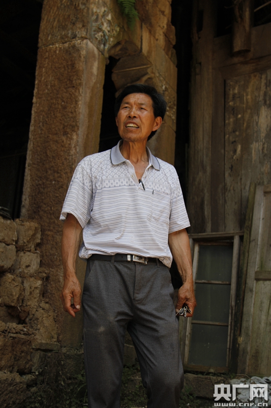 二廳巖古寨中,彭賢忠信口哼出漢戲唱句(央廣記者張兆福攝)