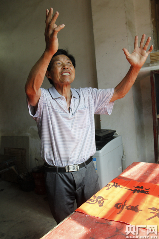 彭賢忠指著自己的作品,自豪不已(央廣記者張兆福攝)