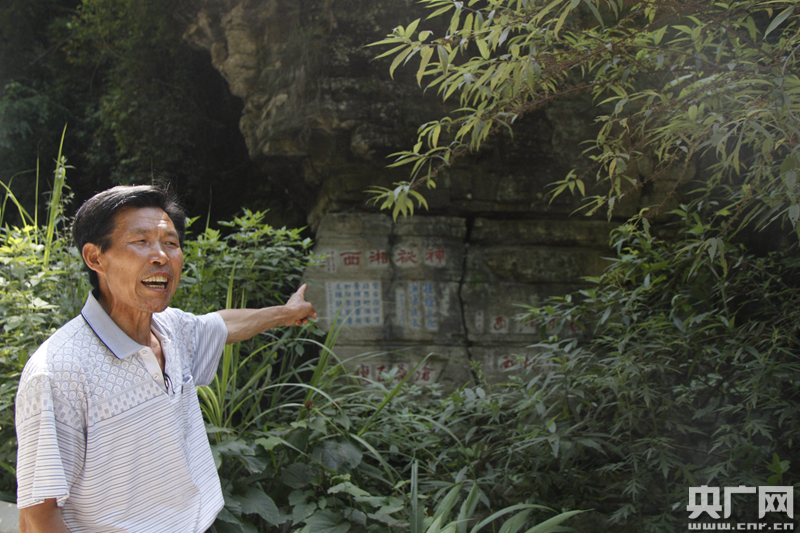 “一腳踏三省,說的是我們這里的地理位置,楚蜀古道,這條河通四川,也通湖北,這是老路,清政府的時(shí)候就是老路了,桂馨塘碧,就是講我們桂塘,美麗漂亮。”在二廳巖村前的跳巖河壁上,25幅書法作品鑿刻其上,彭賢忠指著其中的詞句,給我們講起了桂塘的風(fēng)土人情。