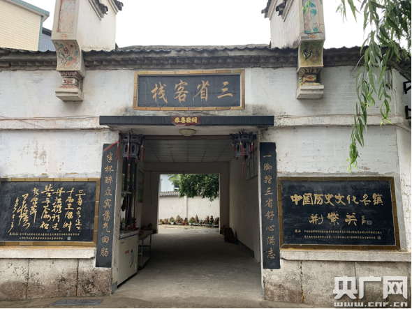 在“三省客!钡拈T(mén)口,掛著一副對(duì)聯(lián):“一腳踏三省舒心滿志,半杯醉眾賓蕩氣回腸!弊笥业膲ι线掛著“中國(guó)歷史文化名鎮(zhèn)荊紫關(guān)”等牌匾。