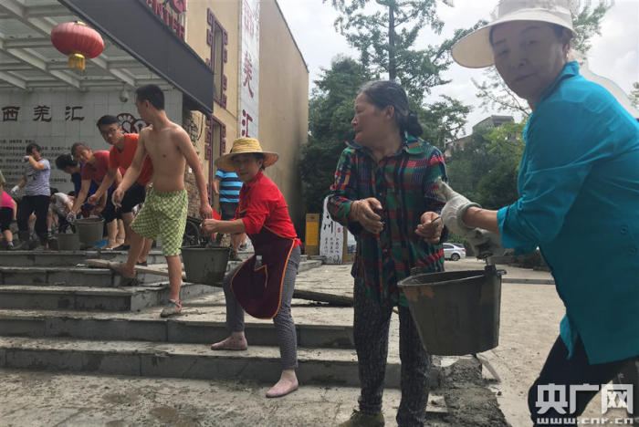 水磨鎮(zhèn)干部群眾開展清淤(央廣網(wǎng)記者 賈宜超 攝)