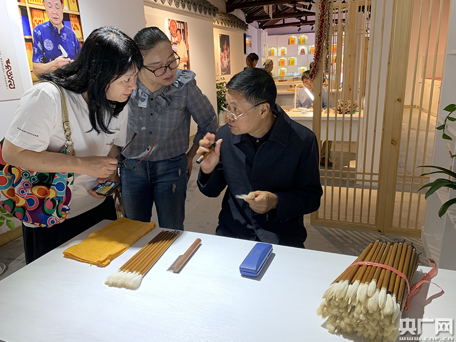 湖筆制作專家講述制作技藝(央廣網記者 張國亮 攝)