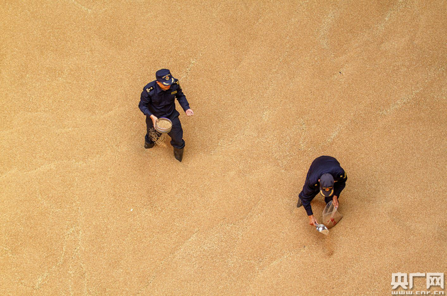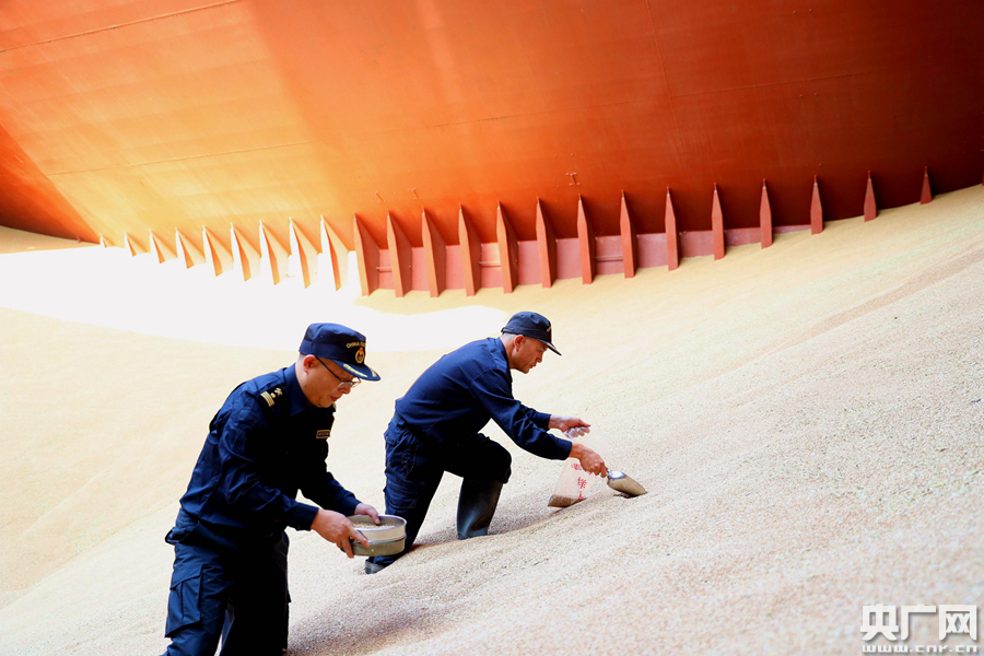 “在錨地,我們對船舶衛(wèi)生檢疫和小麥的表層檢驗(yàn)檢疫先后開展,及時檢查有無重大疫情和質(zhì)量安全問題!蹦仙澈jP(guān)散貨中心查驗(yàn)科王健科長介紹,“就小麥檢驗(yàn)檢疫而言,主要檢查貨物表層是否有水濕結(jié)塊、發(fā)霉變質(zhì)、發(fā)熱酸敗、異味等情況,有無鼠類、鳥類等動物及尸體、動物排泄物等和其他情況。”