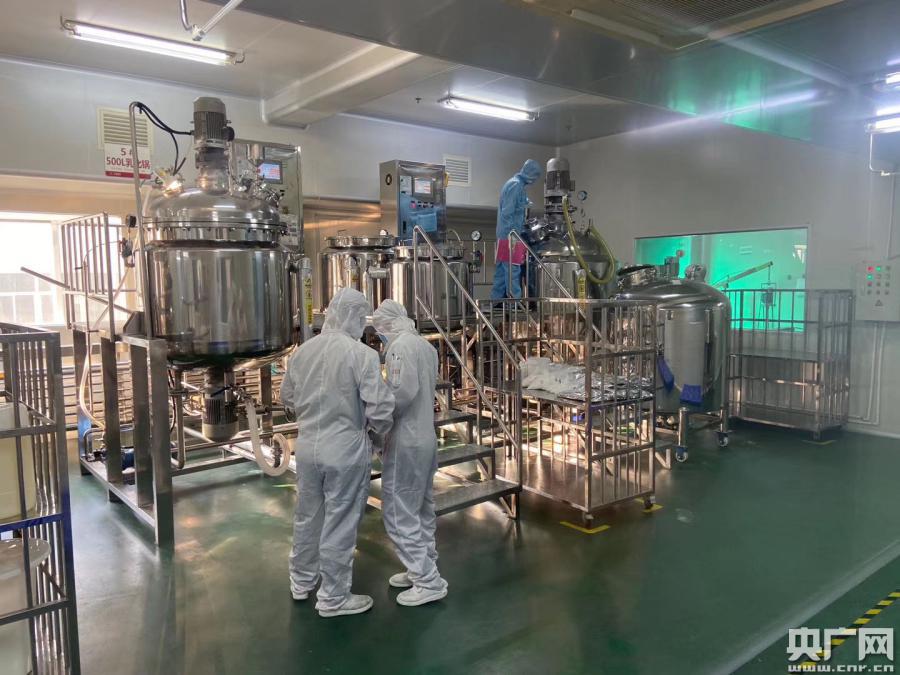 廣州開發(fā)區(qū)的化妝品OEM研發(fā)企業(yè)的乳化生產(chǎn)車間(央廣網(wǎng)發(fā) 馮推順 攝)