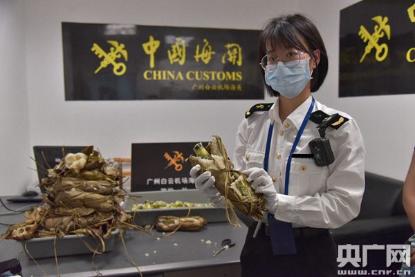 廣州海關(guān)查獲旅客利用食品夾藏超量美元入境案(央廣網(wǎng)發(fā) 海關(guān)供圖)