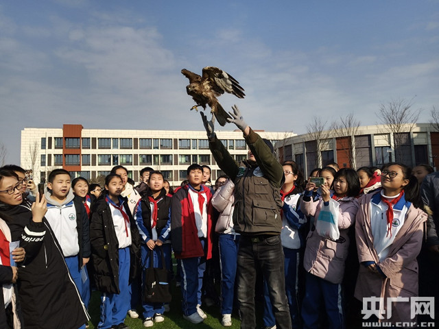 志愿者共同放飛了一只前期救護(hù)的國家二級重點保護(hù)猛禽一一鵟(央廣網(wǎng)記者 王偉 攝)