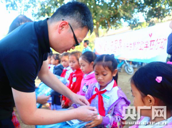 愛心人士向老撾貧困學(xué)生捐贈書包等學(xué)習(xí)用品(央廣網(wǎng)發(fā) 姚英攝)