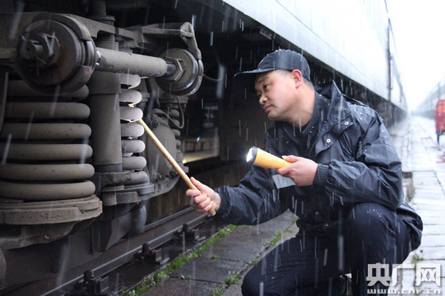 央廣網(wǎng)武漢1月9日消息(記者張毛清 通訊員王世龍)“龔偉軍,襄陽開往青島的K1197次列車制動配件和閘瓦一定要檢修仔細,確保春運期間旅客出行體驗更美好! 1月9日早上八點鐘,維修一班的工班長張喜林對班組職工說道。