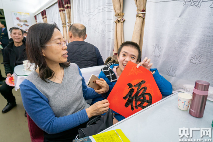 乘車旅客收到列車工作人員現(xiàn)場書寫的福字(央廣網(wǎng)發(fā) 通訊員方正 攝)