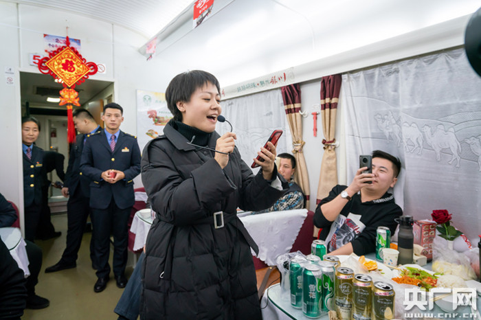 列車工作人員精彩的表演點燃了乘車旅客的熱情,隨媽媽回泰安過年的3歲小朋友自告奮勇,表演了歌曲《小星星》,充滿童真的歌聲引得掌聲不斷;人在歸途的徐州籍旅客姜女士按捺不住心中的激動,演唱了歌曲《最初的夢想》,列車春晚現(xiàn)場高潮迭起,餐車變成了歡樂的海洋……