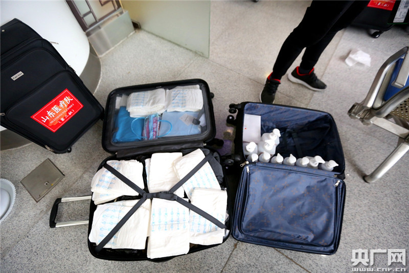 采訪中,記者看到,于亞群的行李中除了常用的換洗衣物外,還有一些成人尿不濕。他告訴記者,到了武漢之后需要穿全身防護(hù)的隔離衣,上廁所會(huì)不方便,穿上這個(gè)成人紙尿布之后會(huì)省去很多麻煩。他坦言,“不緊張是假的,但是我們會(huì)克服這種緊張,一定會(huì)戰(zhàn)勝病魔!