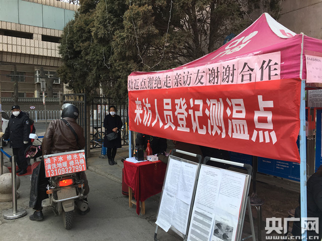 蘭州每個小區(qū)都在出入口設(shè)立了登記測溫點(央廣網(wǎng)記者 張磊 攝)