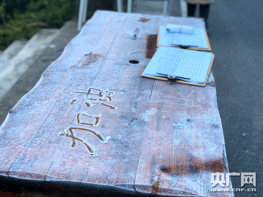夜班工作員在桌面上寫(xiě)下“加油”二字(央廣網(wǎng)發(fā) 淳安宣傳部供圖)
