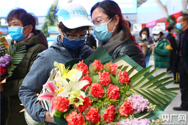 醫(yī)療隊員與送行人員道別(央廣網(wǎng)記者 唐磊 攝)