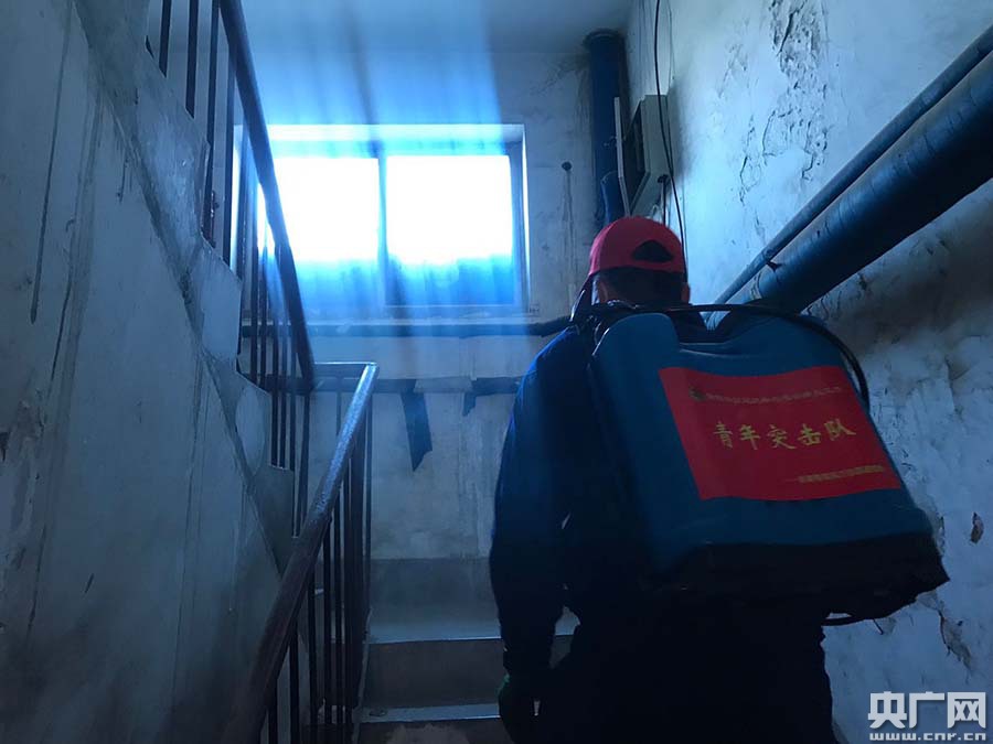 每天帶領(lǐng)隊(duì)員在各個(gè)街巷實(shí)施消殺
