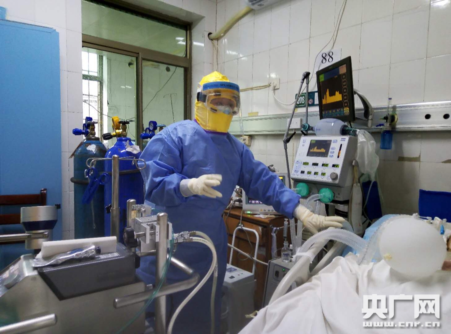 擔任重癥患者的主管醫(yī)生后,劉嬌艷2月15下午五點,接到醫(yī)院通知,又有一個病情危重的病人需要劉嬌艷主管救治,晚上10點多,本應該休息的劉嬌艷還是放心不下,穿著厚重的防護服又來到病房,由于病人的情況非常嚴重,她必須一刻不停地檢視屏幕、連接管、各種儀器和病人動靜,病人的心律、呼吸、脈搏、血氧飽和度,哪一個都必須高度警惕,靜脈通路必須保持暢通,呼吸機必須暢通。