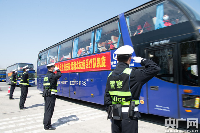 合肥交警護航支援武漢白衣戰(zhàn)士凱旋(央廣網(wǎng)發(fā) 合肥市公安局供圖)