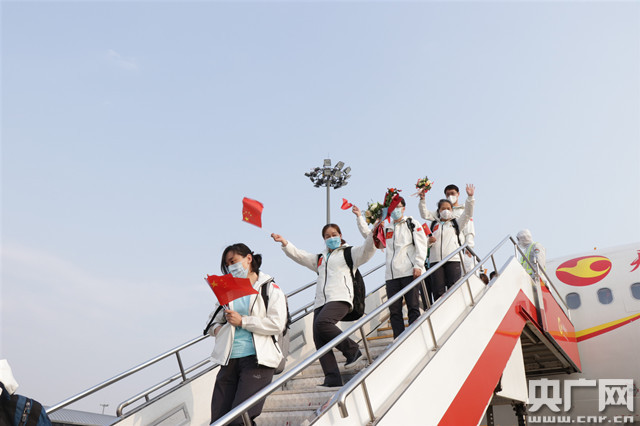 央廣網(wǎng)天津3月24日消息(記者夏震宇 褚夫晴)3月24日下午,天津?qū)谥г魇┽t(yī)療隊(duì)的106名醫(yī)護(hù)人員乘機(jī)抵達(dá)天津?yàn)I海國(guó)際機(jī)場(chǎng),結(jié)束了他們42天的援助工作,順利返回天津。2月12日以來(lái),天津市先后從全市50家單位(6家市級(jí)部門、27家醫(yī)院、17家疾控中心),抽調(diào)4批共134人(管理人員8人、新聞?dòng)浾?人、醫(yī)務(wù)人員124人)組成醫(yī)療隊(duì)馳援恩施。