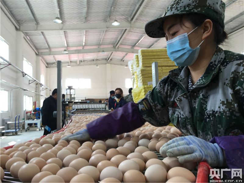 禮縣金雞產(chǎn)業(yè)園車間工人正忙著分揀雞蛋(央廣網(wǎng)記者 張磊攝)