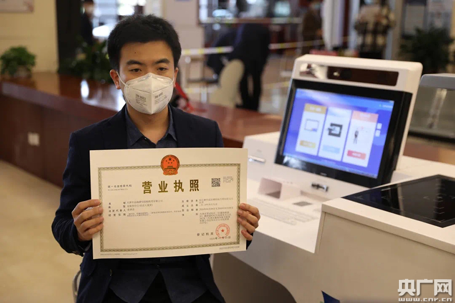 企業(yè)順利拿到天津市首張自助打印的營(yíng)業(yè)執(zhí)照(央廣網(wǎng)發(fā) 天津東疆保稅港區(qū)供圖)