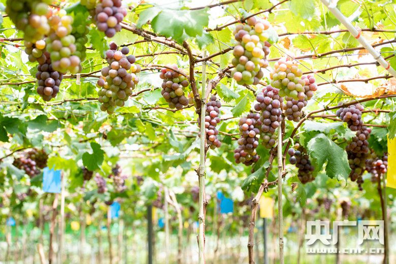 央廣網(wǎng)南寧7月21日消息(記者鄧君洋 通訊員何華文 顏桂海)近年來,廣西壯族自治區(qū)梧州市長洲區(qū)因地制宜、調(diào)整農(nóng)業(yè)種植結(jié)構(gòu),結(jié)合實際情況發(fā)展以特色種植、生態(tài)采摘、旅游觀光為亮點的休閑觀光農(nóng)業(yè),并引進市場價格較高的陽光玫瑰進行種植,著力打造二百多畝大棚葡萄采摘園,為附近農(nóng)民拓寬致富增收的道路。今年7月中旬,梧州市長洲區(qū)倒水鎮(zhèn)富萬村天達葡萄園迎來收獲季。