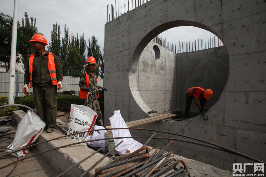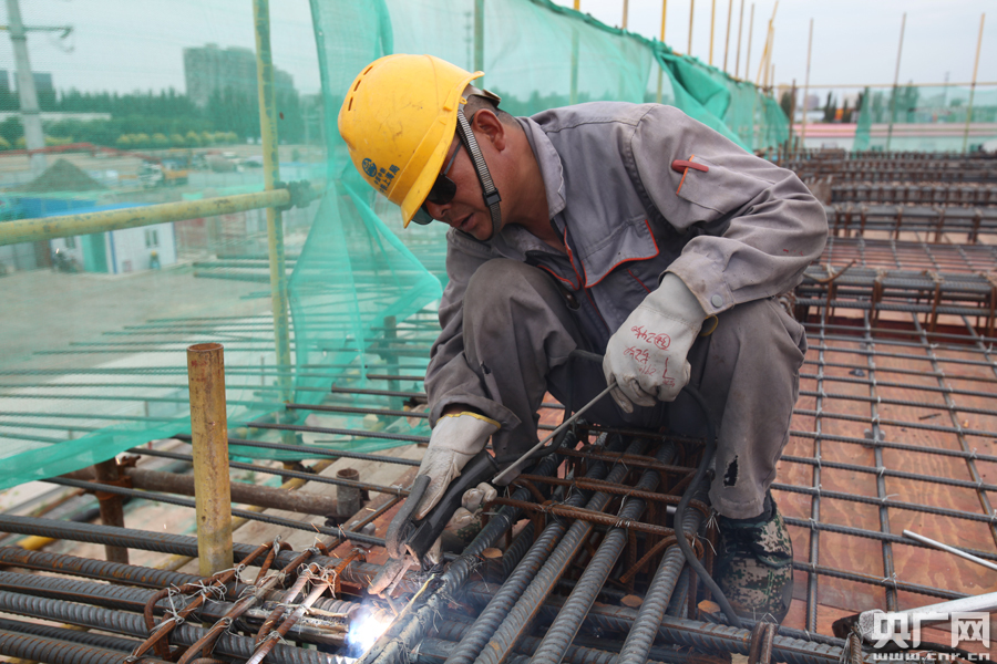工人緊張施工中(總臺央廣記者 徐升 攝)