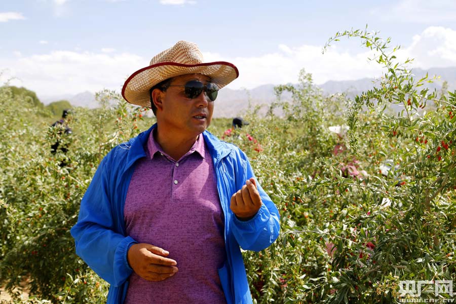 枸杞承包戶海永存向記者介紹今年收成情況(央廣網(wǎng)記者 張雷 攝)