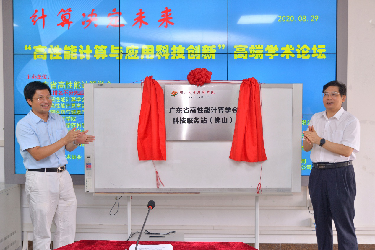 論壇開(kāi)幕式上,舉行了“廣東省高性能計(jì)算學(xué)會(huì)科技服務(wù)站(佛山)”揭牌儀式。