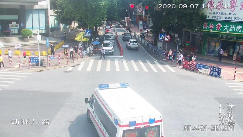 花都警方立即啟動交通事故應(yīng)急救援聯(lián)動保障機制,一方面就近調(diào)派兩輛大功率警用摩托車到場,開啟警燈警笛,通過喊話器提醒車輛及行人避讓,為“120”救護車開路。另一方面指揮臺通過全程視頻調(diào)度各路段執(zhí)勤警力通力協(xié)作,默契配合,在沿途路口疏導(dǎo)車流人流,為救護車開辟綠色通道。僅用4分鐘,就將救護車快速安全護送到區(qū)人民醫(yī)院,為搶救傷者贏得了寶貴時間。
