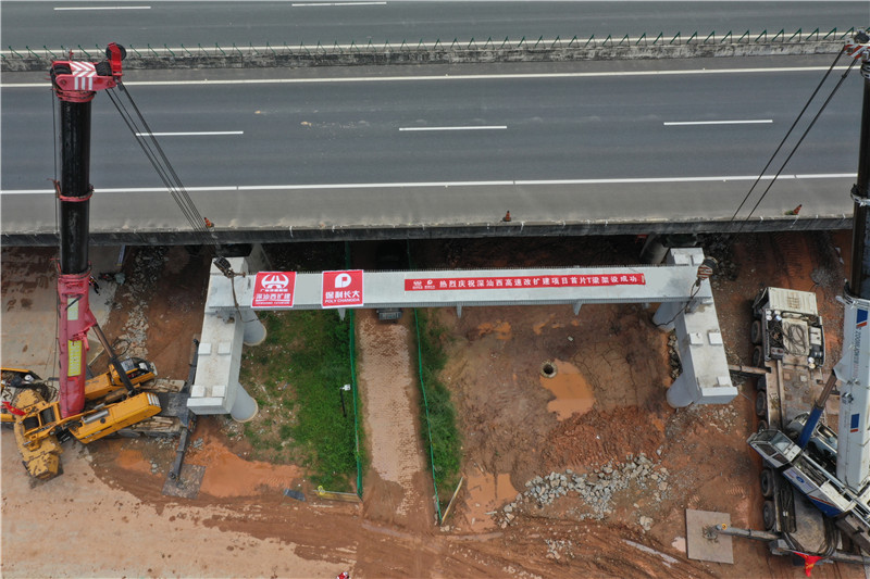深汕西高速改擴建首片梁架設(shè)成功(央廣網(wǎng)發(fā)通訊員供圖)