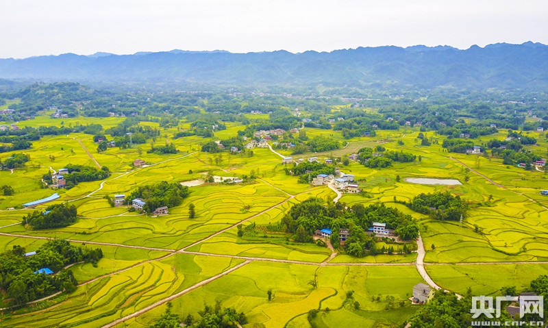 梁平區(qū)新盛鎮(zhèn)樂(lè)都社區(qū),金黃的稻谷鋪滿大地。(央廣網(wǎng)發(fā) 熊偉 攝)