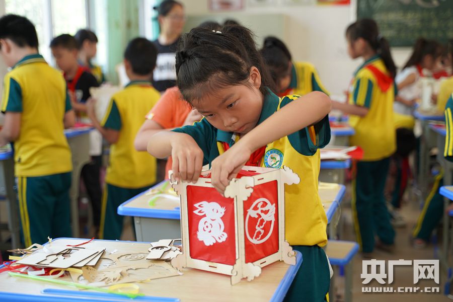 小朋友全神貫注制作宮燈(央廣網(wǎng)發(fā) 主辦方供圖)