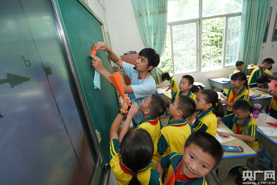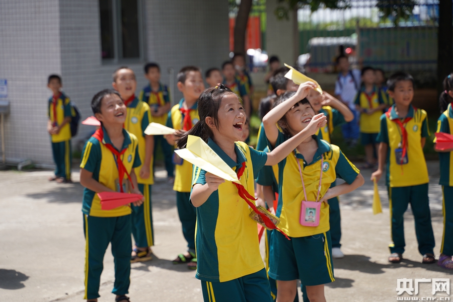 “實現(xiàn)飛行夢想”課堂,孩子們折疊并放飛紙飛機(央廣網(wǎng)發(fā) 主辦方供圖)