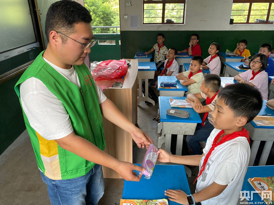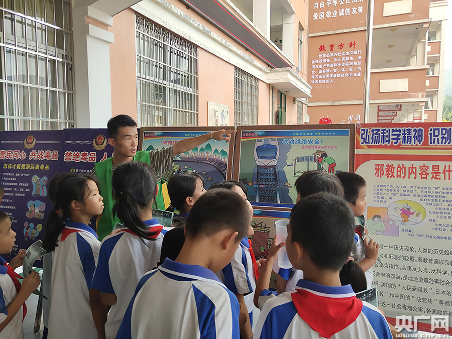 永安工務為學生講解海報內容(央廣網(wǎng)發(fā) 通訊員供圖)