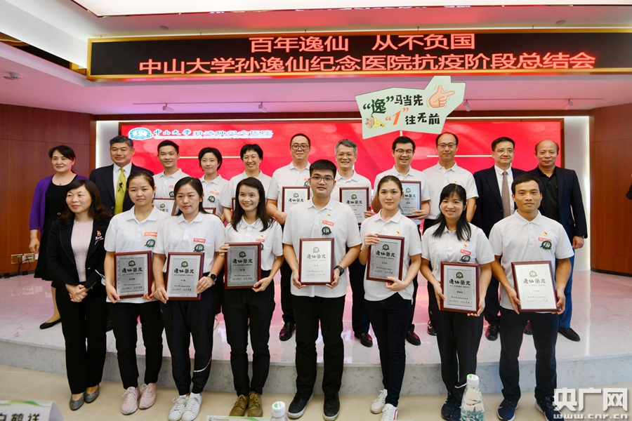 央廣網(wǎng)廣州10月20日消息(記者鄭澍 通訊員張陽、黃睿)19日下午,中山大學(xué)孫逸仙紀(jì)念醫(yī)院舉行了抗疫階段總結(jié)會,向奮戰(zhàn)在抗疫最前線的白衣勇士致敬。會上,院長宋爾衛(wèi)院士、黨委書記王景峰等院領(lǐng)導(dǎo)為該院158位抗疫有功的醫(yī)務(wù)工作者頒發(fā)“逸仙榮光獎”,向他們致以最高的敬意。