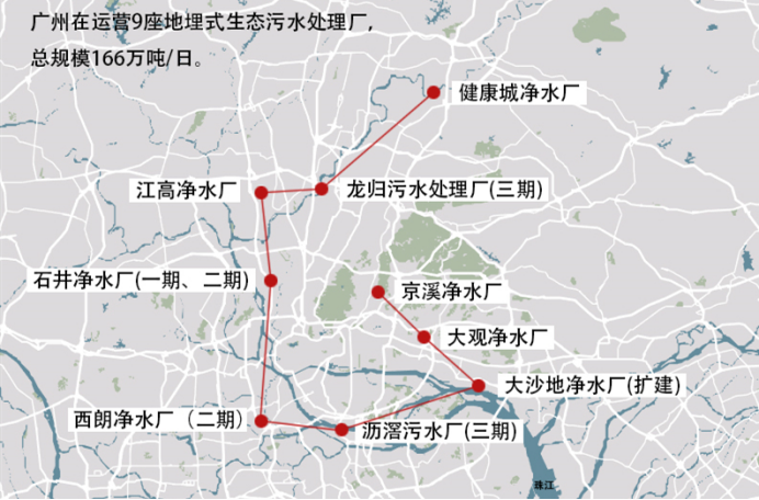 △廣州建成地埋式污水處理廠9座,總產(chǎn)能181萬噸日,呈北斗狀分布于珠江兩岸,被譽為“地下北斗9星”(央廣網(wǎng)發(fā) 廣州市水務局供圖)