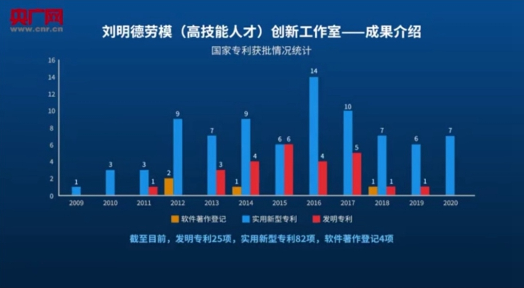 2016年8月,“劉明德勞模(高技能人才)創(chuàng)新工作室”成立,迄今累計(jì)獲得111項(xiàng)國家專利。