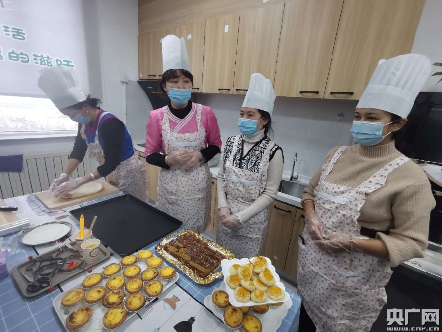 社區(qū)居民正在學(xué)習(xí)糕點制作技術(shù)(央廣網(wǎng)記者 卜鵬 攝)