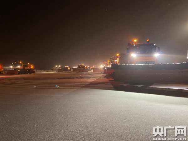 央廣網(wǎng)烏魯木齊12月27日消息(記者吳卓勝 通訊員李聃 趙正宏)27日凌晨1點(diǎn),烏魯木齊國際機(jī)場開始持續(xù)性降雪,飛行區(qū)管理部利用機(jī)場夜間無航班期間,對(duì)跑道、滑行道采取冷吹加熱吹,在機(jī)坪采取多車編隊(duì)等模式開展除冰雪作業(yè)。