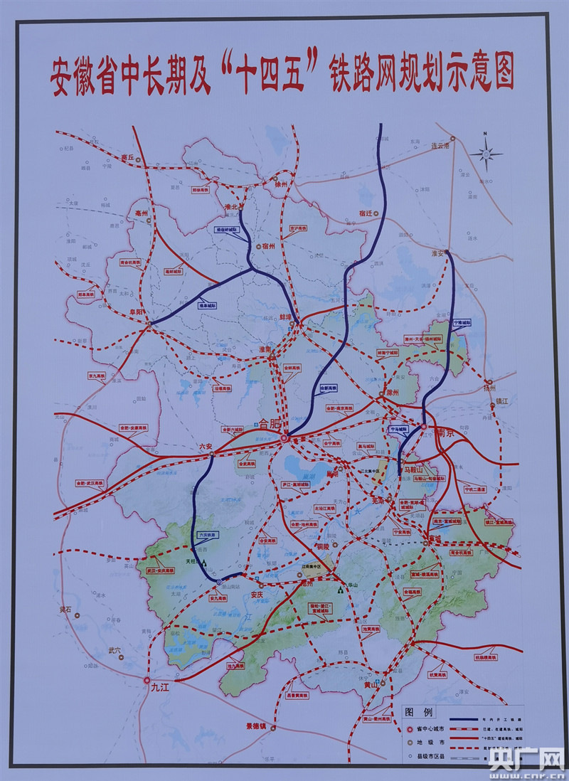 安徽省中長(zhǎng)期及“十四五”鐵路網(wǎng)規(guī)劃示意圖(央廣網(wǎng)記者 劉軍 攝)