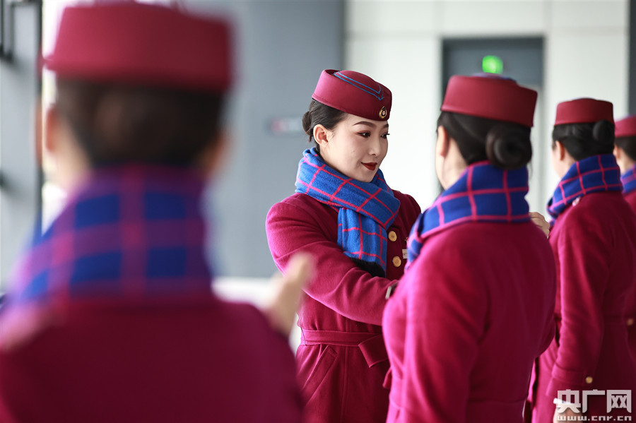 1月7日,乘務(wù)人員在進(jìn)行禮儀培訓(xùn)。(央廣網(wǎng)發(fā) 通訊員蘇志剛 攝)