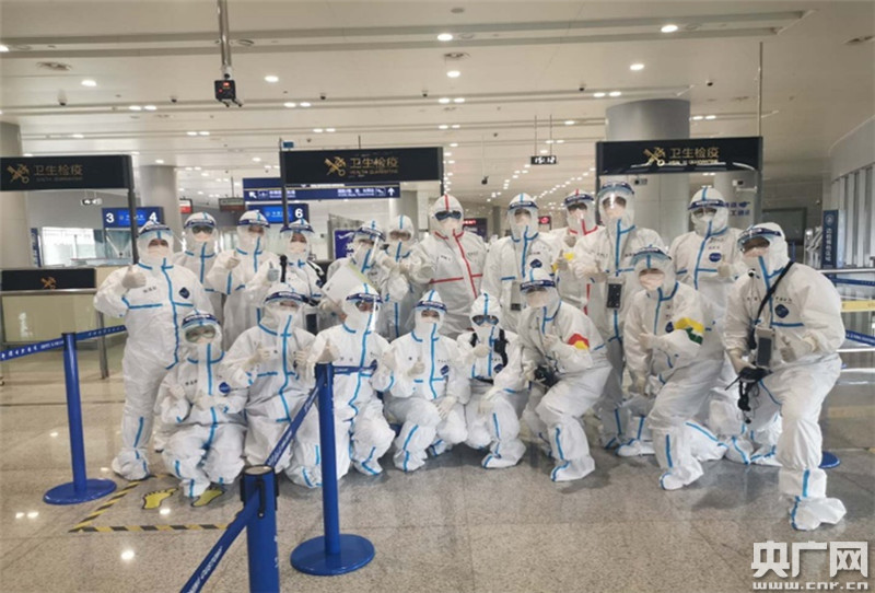 疫情防控小隊(duì)在完成外籍專家入境檢疫轉(zhuǎn)運(yùn)工作后合影留念 (央廣網(wǎng)發(fā) 新站區(qū)供圖)